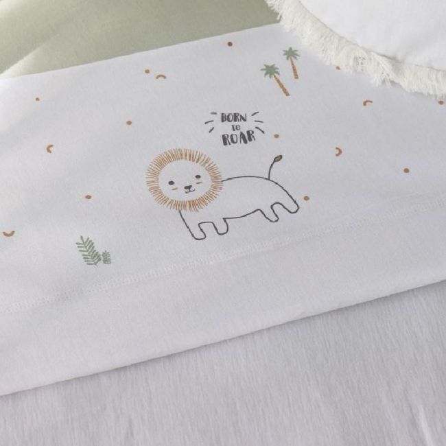 Ensemble de draps pour lit de bébé Nairobi de Bonjourbébé, composé d'un drap-housse ajustable, d'un drap plat et d'une taie d'oreiller.