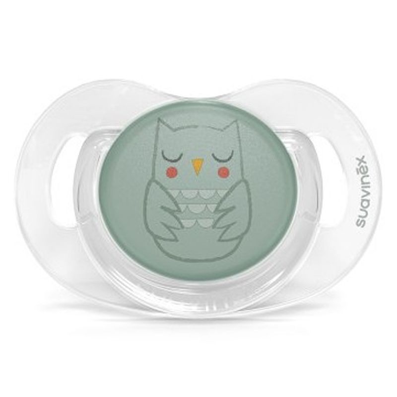 Suavinex présente cette sucette en silicone symétrique.