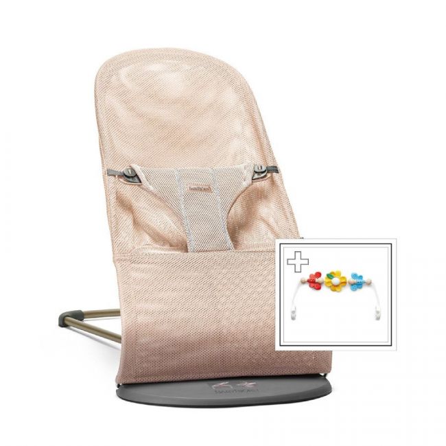 SDondolo BabyBjörn per bambini. Dondolo senza batterie di design svedese modello Bliss di BabyBjörn. Tessuto Mesh traspirante di colore rosa perla.