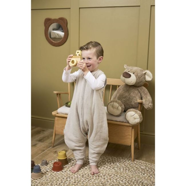 Questo pigiama imbottito, realizzato in idrofilo prelavato, offre la sensazione familiare di un sacco a pelo, ma il tuo piccolo può camminare e continuare a scoprire il mondo grazie alle due gambe incorporate. Il pigiama da notte è disponibile in diversi colori alla moda. Foderato in idrofilo prelavato, è fatto di cotone 100% morbido e ha un imbottitura di poliestere 100%. Questo rende il pigiama ideale per la primavera e l'autunno e per i giorni e le notti più freddi dell'inverno. Il cotone idrofilo respira molto bene, ha un'eccellente assorbimento dell'umidità e si asciuga molto rapidamente. Questo mantiene l'ambiente di sonno del tuo piccolo alla temperatura perfetta.Nel sacco a pelo jumper, le gambe del tuo piccolo dormiente sono ognuna nel proprio tubo, dandogli molta libertà di movimento. La lunga cerniera inferiore facilita il cambio del bambino e la messa e la rimozione del sacco a pelo. Il pigiama ha un valore TOG di 2,0. Più alto è il valore TOG, più è caldo.